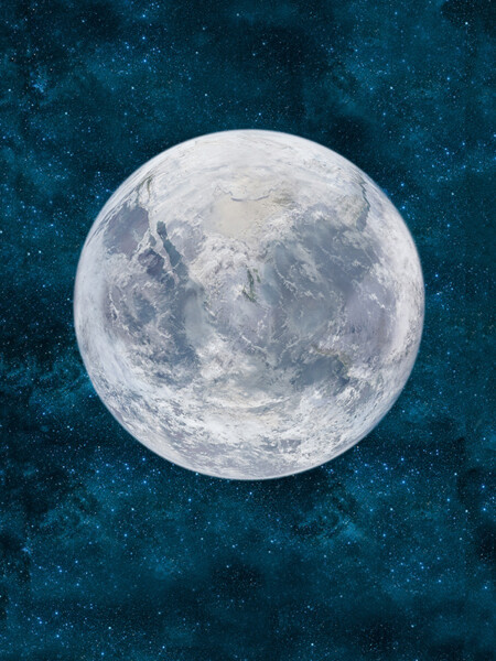 die arbeiten blauer planet werfen einen blick vom weltraum auf die erde und zeigen einen planeten mit vielfältiger naturzerstörung, umkreist von weltraummüll. blue marble ist das bekannte, von der apollo 17-crew 1972 aufgenommene foto der erde. es zeigt – das erste mal – den voll erleuchteten erdball. die originalaufnahme mit dem verschneiten südpol oben wurde von der NASA um 180 grad gedreht, um nicht mit den sehgewohnheiten der nord-südachse zu brechen. blue marble 2 zeigt die nicht gedrehte version – entgegen unserer gewohnten Sichtweise.