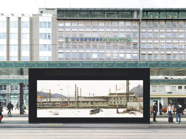 plakatprojekt in der reihe 7,44 x 2,60 : screen der tiroler landesmuseen am vorplatz des innsbrucker hauptbahnhofs, 2008/09