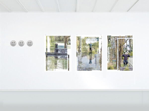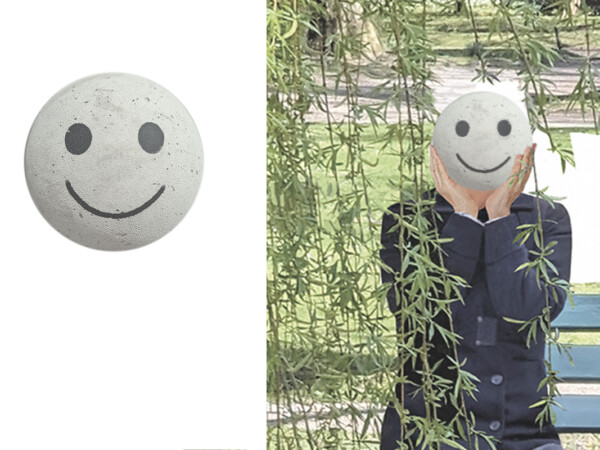 meine installation umfasst die serie communication gap und die betonobjekte communication smile. in den bildmontagen communication gap verbergen personen ihr gesicht hinter betonhalbkugeln, die an smileys erinnern. das von harvey ball 1963 entworfene zeichen wird täglich in zahlreichen digitalen varianten als grafische darstellung eines gesichtsausdrucks verschickt und ersetzt text und das eigentliche antlitz. die anonymisierten smiley-gesichter stehen im kontrast zum assenhaften „konsum“ von gesichtern, zur allgegenwärtigen selbstinszenierung und selbstdarstellung. die betonhalbkugeln bilden in ihrer materialität einen gegensatz zu den digitalen emojis. die abgebildeten personen und ihre spiegelbilder verweisen auf illusion und täuschung, auf ständig wechselnde realitäten.