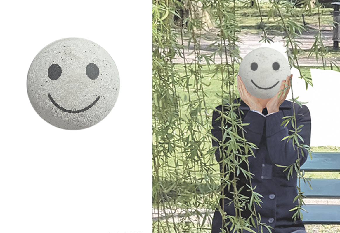 meine installation umfasst die serie communication gap und die betonobjekte communication smile. in den bildmontagen communication gap verbergen personen ihr gesicht hinter betonhalbkugeln, die an smileys erinnern. das von harvey ball 1963 entworfene zeichen wird täglich in zahlreichen digitalen varianten als grafische darstellung eines gesichtsausdrucks verschickt und ersetzt text und das eigentliche antlitz. die anonymisierten smiley-gesichter stehen im kontrast zum assenhaften „konsum“ von gesichtern, zur allgegenwärtigen selbstinszenierung und selbstdarstellung. die betonhalbkugeln bilden in ihrer materialität einen gegensatz zu den digitalen emojis. die abgebildeten personen und ihre spiegelbilder verweisen auf illusion und täuschung, auf ständig wechselnde realitäten.